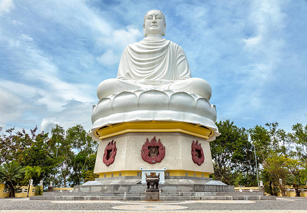 롱선사(Long Son Pagoda)는 나트랑에서 가장 유명한 불교 사찰 중 하나로, 하얀 대형 좌불상이 언덕 위에 위엄 있게 앉아 도시 전경을 내려다보는 인상적인 명소이다.